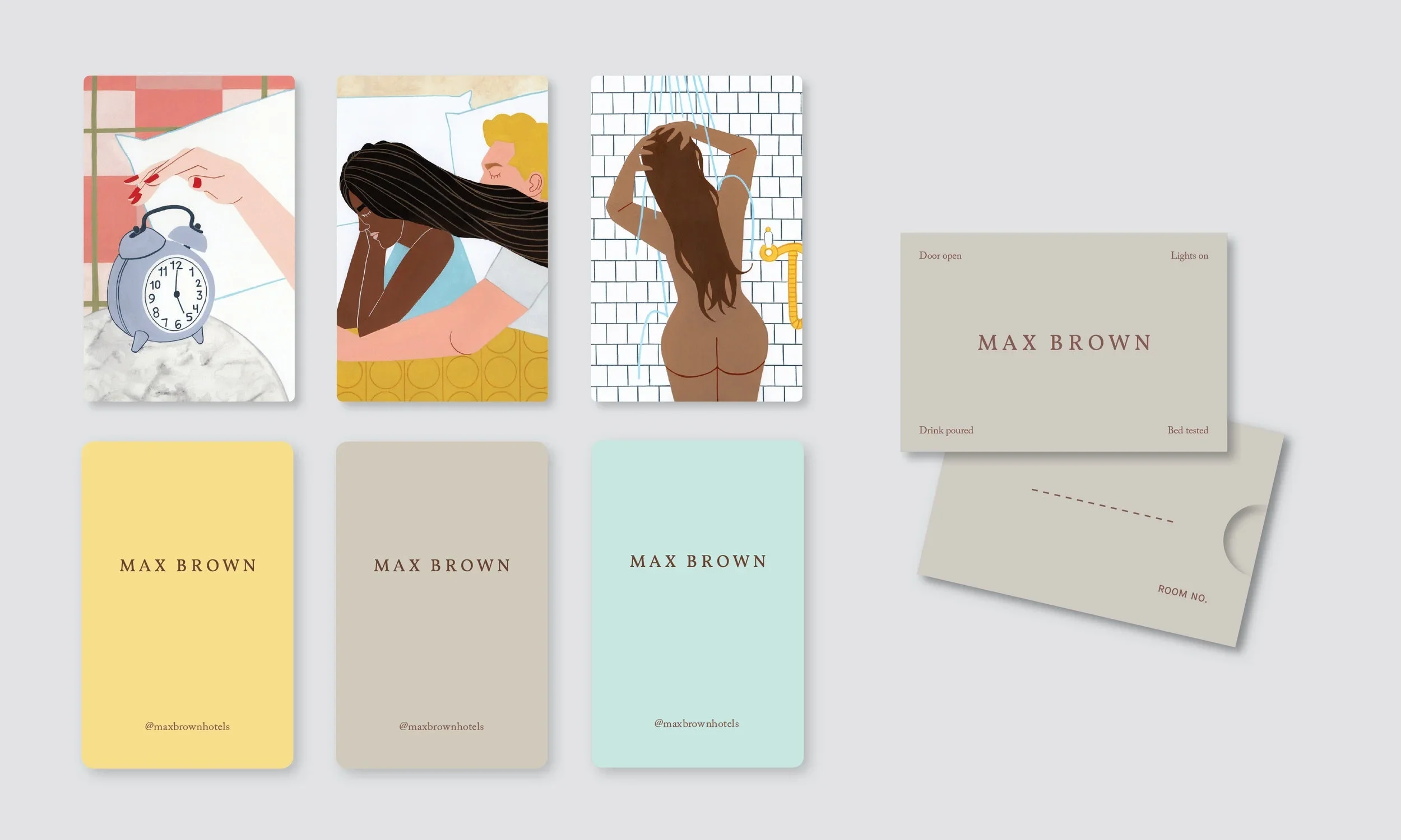 Hand-painted illustrations were created of the actual spaces in and around this Amsterdam hotel, along with spot-illustrations, which were used to help evolve Max Brown’s brand to create a new visual identity.