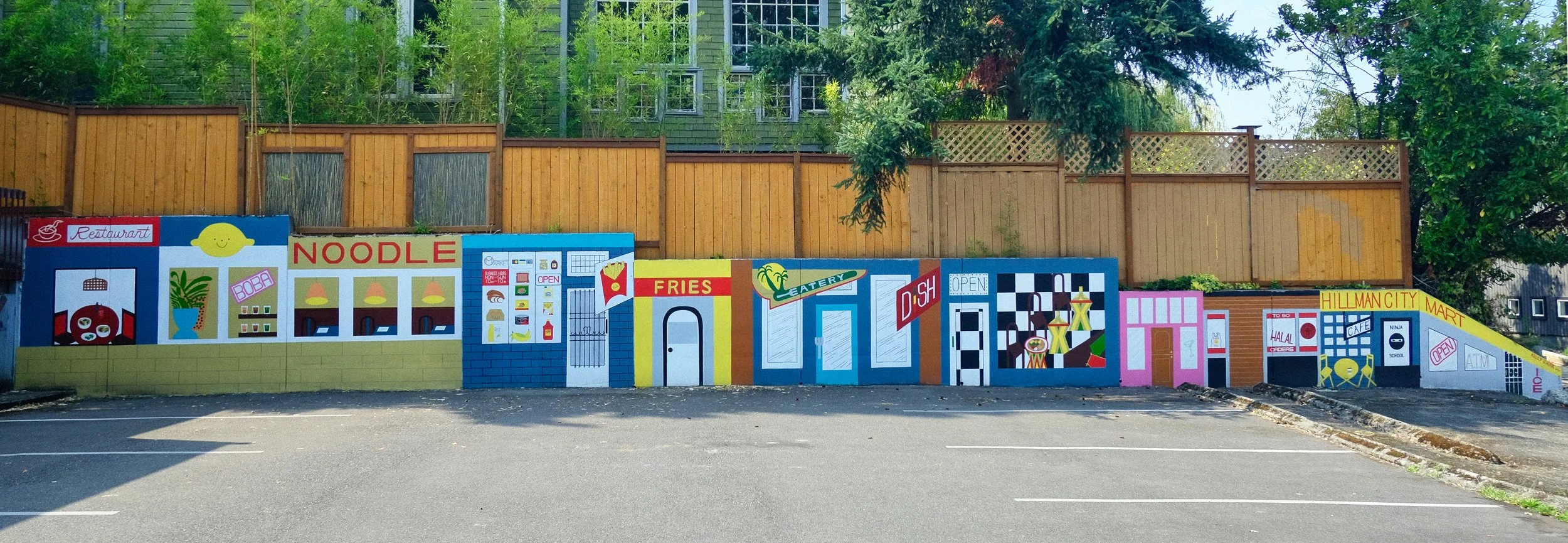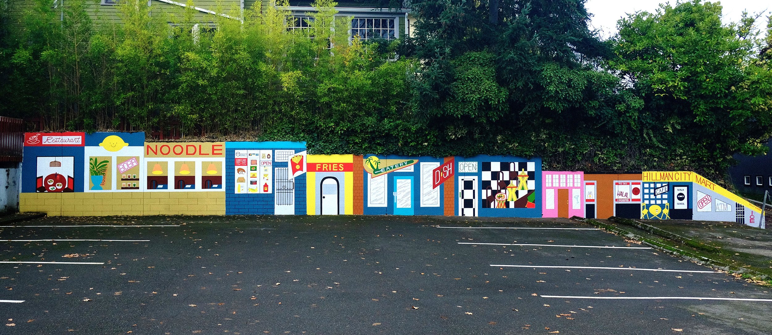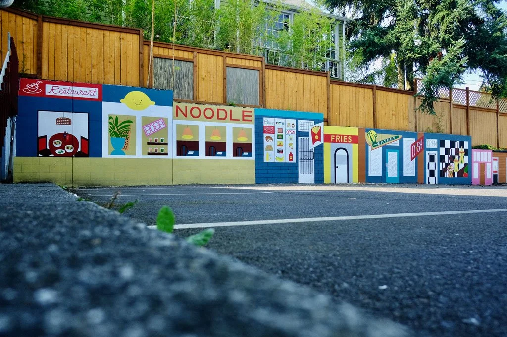 This mural depicts the incredible diversity of Hillman City by portraying establishments located throughout the neighborhood. To those who live there, these storefronts are easily recognizable, and immortalize the local businesses that were there the time the mural was painted.